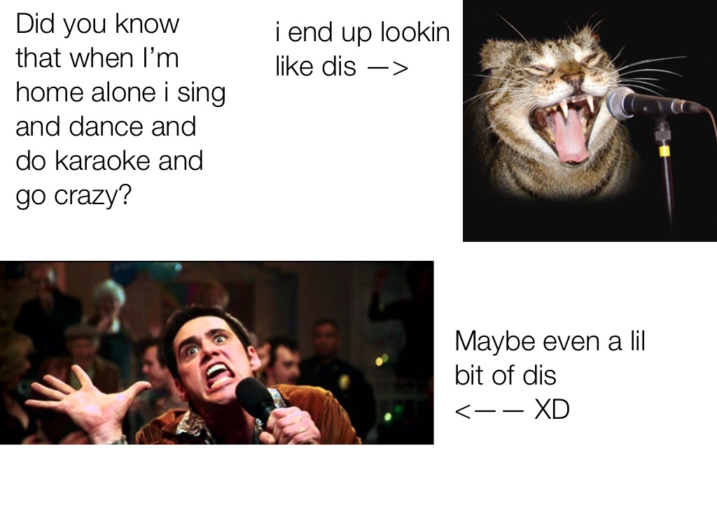 Did you know that when Iām home alone i sing and dance and do karaoke and go crazy?