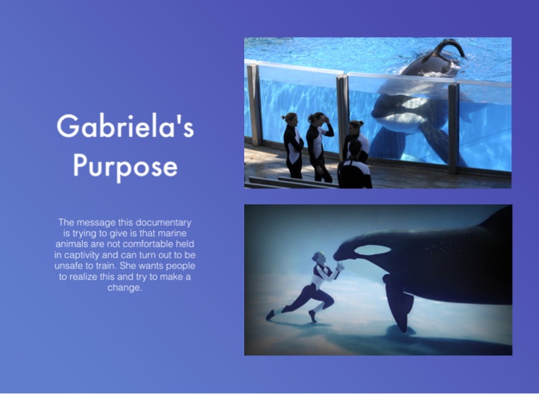 The message this documentary is trying to give is that marine animals are not comfortable held in captivity and can turn out to be unsafe to train. She wants people to realize this and try to make a change.