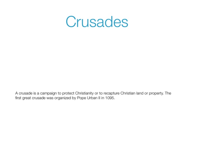 A crusade is a campaign to protect Christianity or to recapture Christian land or property. The first great crusade was organized by Pope Urban II in 1095.