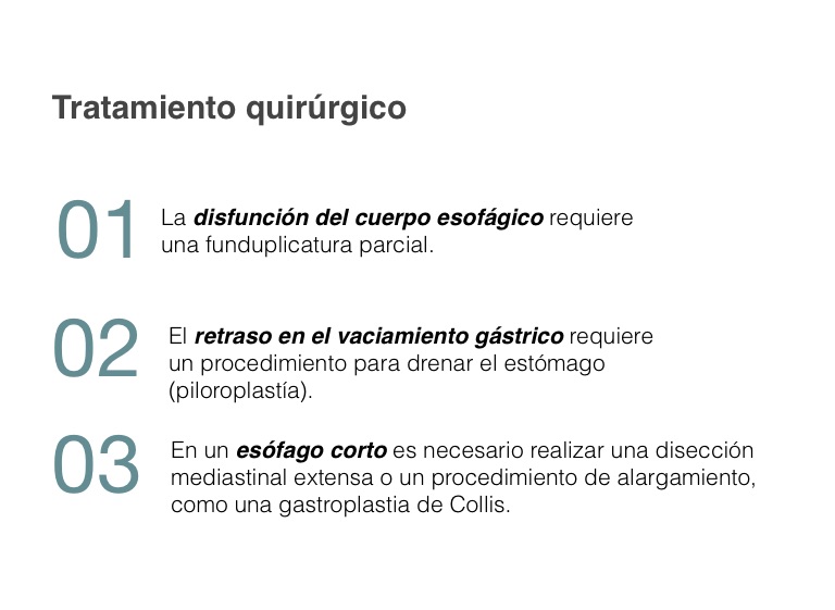 En un esófago corto es necesario realizar una disección mediastinal extensa o un procedimiento de alargamiento, como una gastroplastia de Collis.