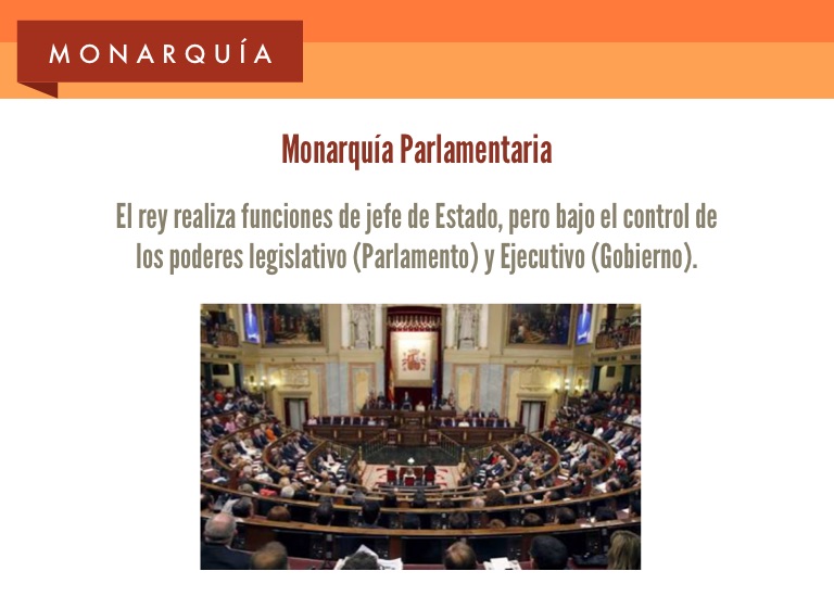 El rey realiza funciones de jefe de Estado, pero bajo el control de los poderes legislativo (Parlamento) y Ejecutivo (Gobierno).