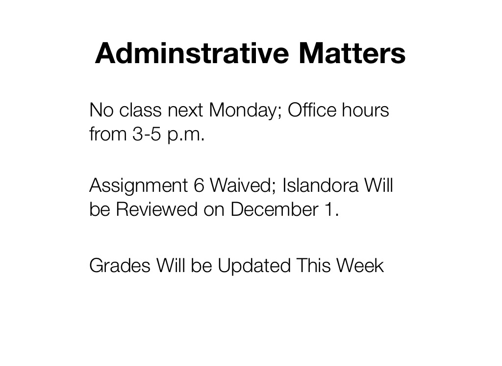 Assignment 6 Waived; Islandora Will be Reviewed on December 1.