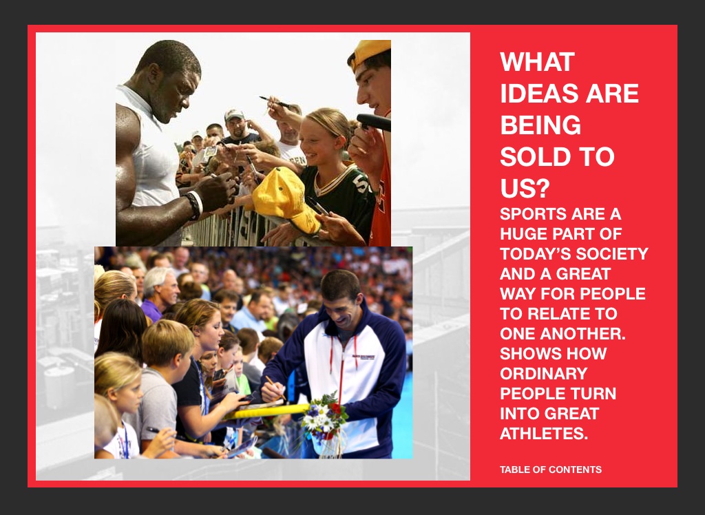 SPORTS ARE A HUGE PART OF TODAY’S SOCIETY AND A GREAT WAY FOR PEOPLE TO RELATE TO ONE ANOTHER. SHOWS HOW ORDINARY PEOPLE TURN INTO GREAT ATHLETES.