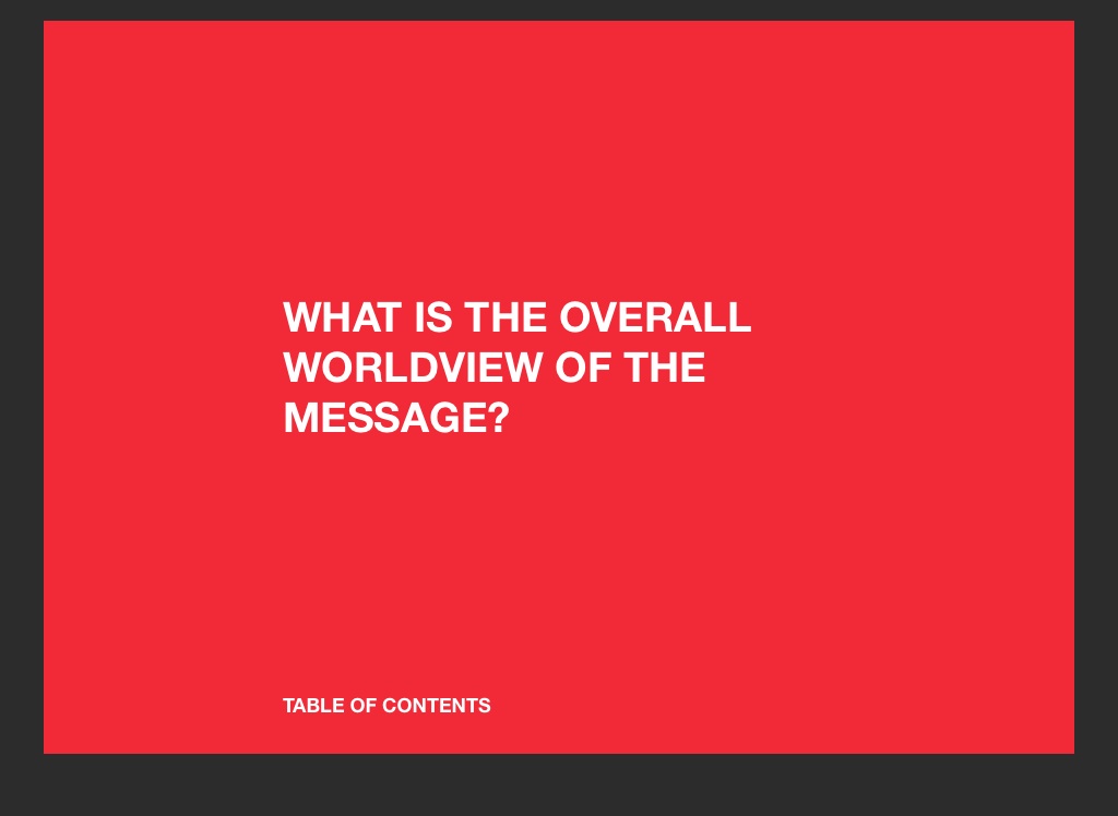 WHAT IS THE OVERALL WORLDVIEW OF THE MESSAGE?