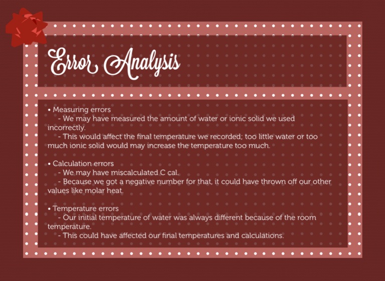 - This would affect the final temperature we recorded; too little water or too much ionic solid would may increase the temperature too much.
