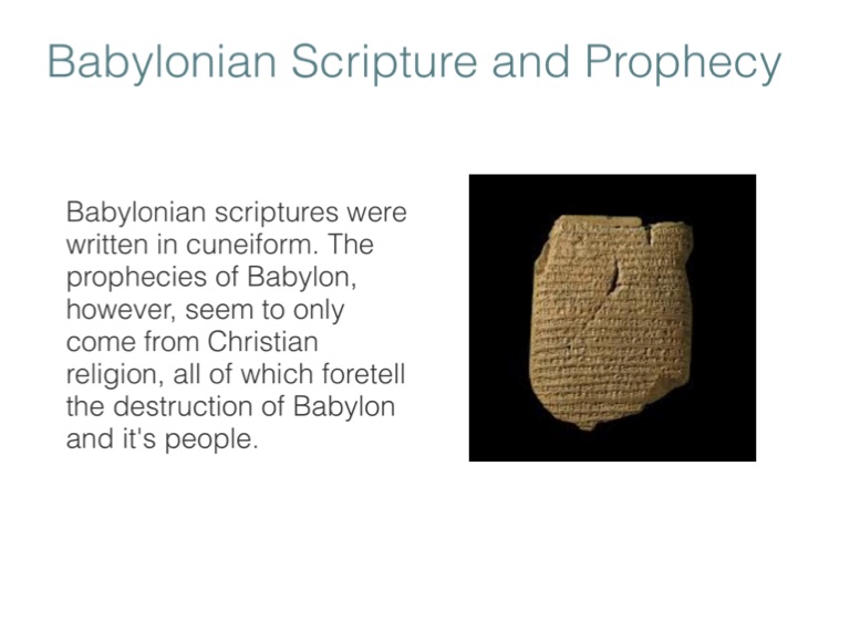 Babylonian scriptures were written in cuneiform. The prophecies of Babylon, however, seem to only come from Christian religion, all of which foretell the destruction of Babylon and it's people.