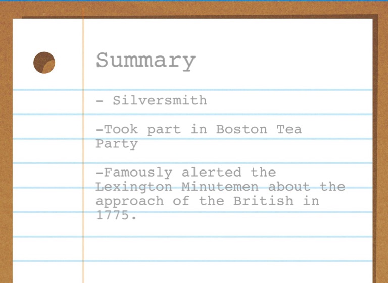 -Famously alerted the Lexington Minutemen about the approach of the British in 1775.