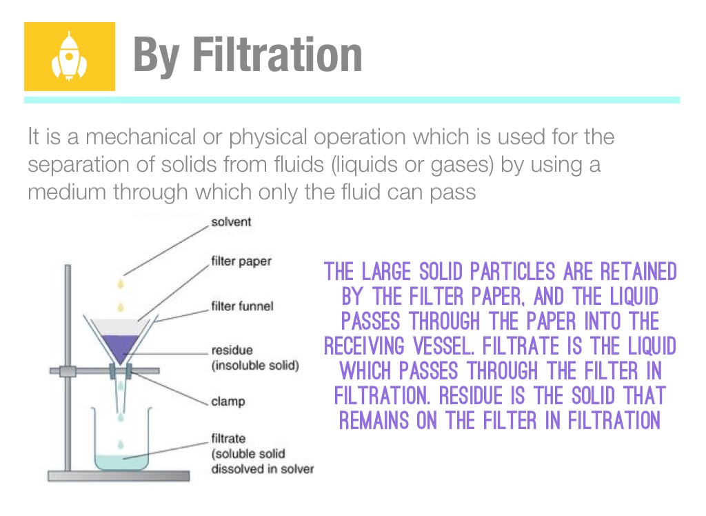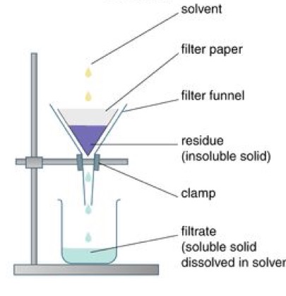 The large solid particles are retained by the filter paper, and the lıquıd passes through the paper into the receiving vessel. Filtrate is the lıquıd which passes through the filter in fıltration. Residue is the solid that remains on the filter in filtration