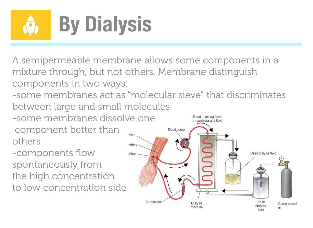 A semipermeable membrane allows some components in a mixture through, but not others. Membrane distinguish components in two ways;