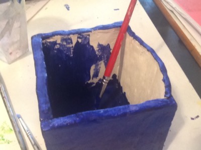 To make the blue I used I mixed warm blue with a charcoal grey to make the colour less vibrant the I mixed blue and white which turned into a very vibrant blue where I blended that into the other colours on my box