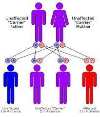 - 1 carrier parent + 1 carrier parent = 50% carrier offspring