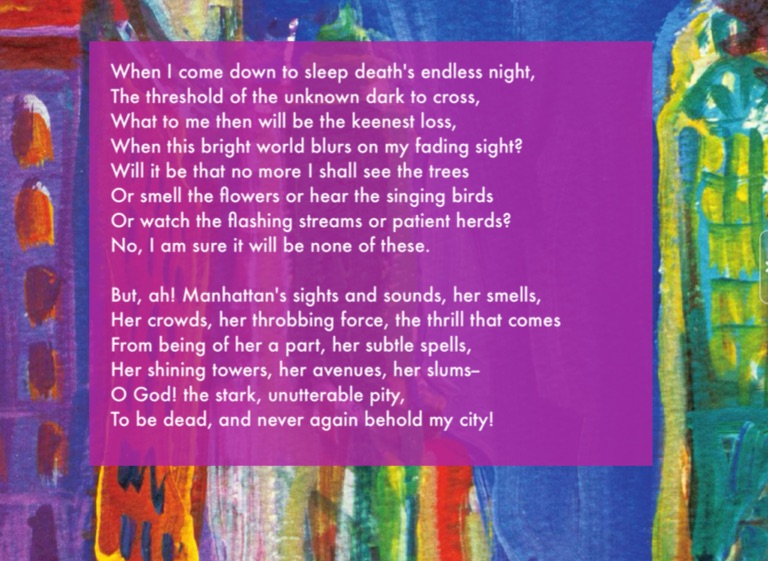 But, ah! Manhattan's sights and sounds, her smells,