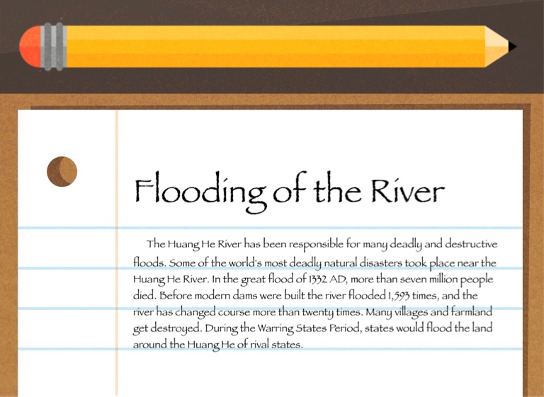 The Huang He River has been responsible for many deadly and destructive floods. Some of the world's most deadly natural disasters took place near the Huang He River. In the great flood of 1332 AD, more than seven million people died. Before modern dams were built the river flooded 1,593 times, and the river has changed course more than twenty times. Many villages and farmland get destroyed. During the Warring States Period, states would flood the land around the Huang He of rival states.