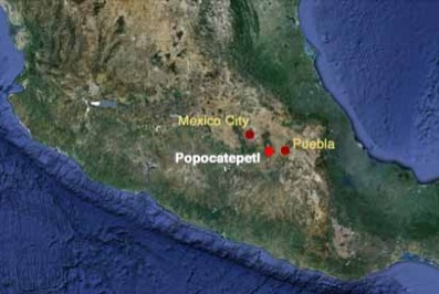 Popocatepetl is located in Publa-Morelos, Mexico, North America.