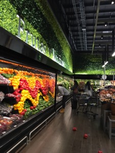 En esta imagen podemos, apreciar el uso de follaje sintético en la nomenclatura del departamento, en la parte baja, es él área de refrigeración que cuenta con aspersores programados, que constantemente están refrescando a la exhibición. Vemos de nuevo el manejo de acomodo con líneas ondeantes de expresión dinámica.