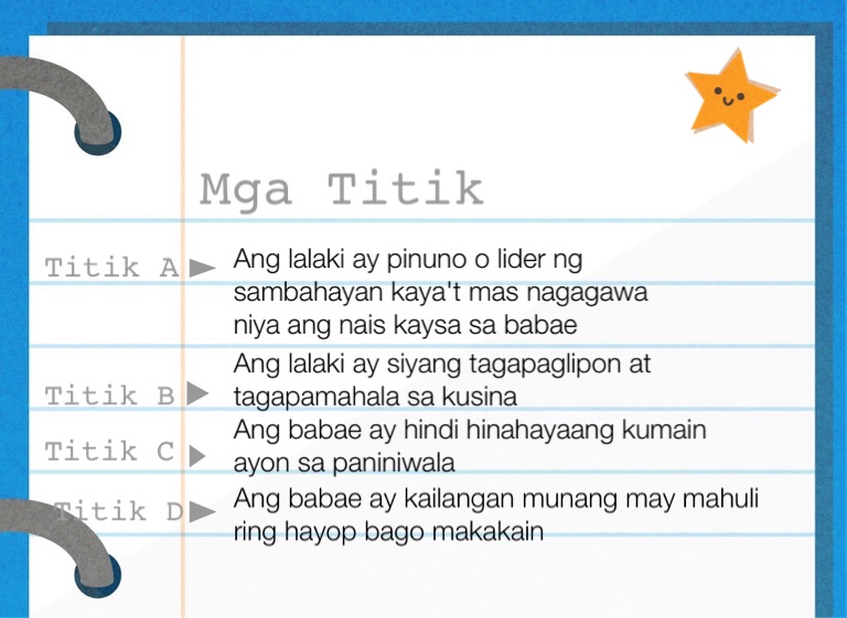 Ang lalaki ay pinuno o lider ng sambahayan kaya't mas nagagawa niya ang nais kaysa sa babae