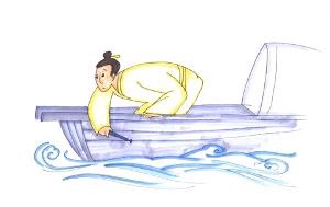 A man from the state of Chu was crossing a river.In the boat,his sword fell into the water.Immediately he made a mark on the boat.