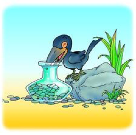 At last he find a dry river but there is no water, there is only a bottle with some water. he is so lucky, when he want to drink he find he can't touch the water. He was so said then he find a good idea he find some stone put in the water.