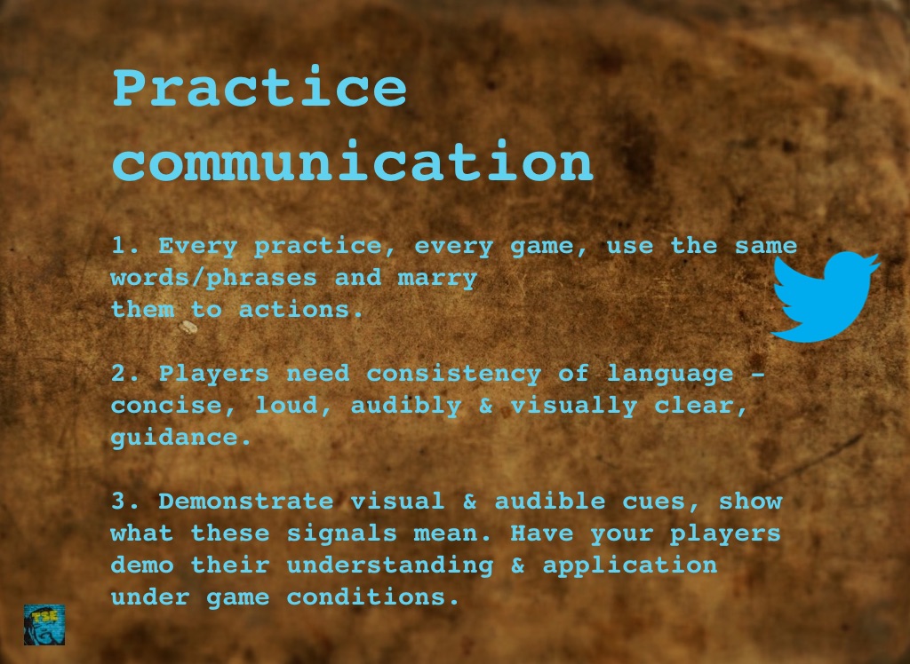 3. Demonstrate visual & audible cues, show what these signals mean. Have your players demo their understanding & application under game conditions.