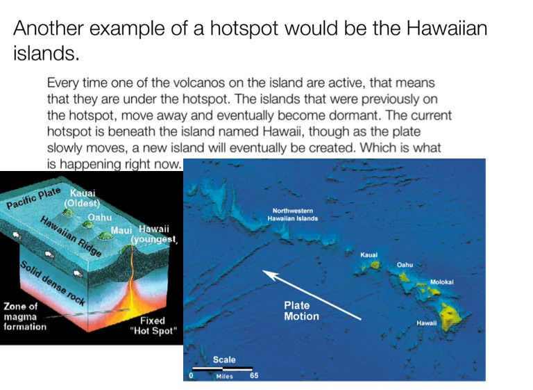Another example of a hotspot would be the Hawaiian islands.