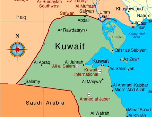 Kuwait is mainly flat and desert like with sandy plains. The hightest point is a hill along the border of Saudi Arabia measuring 1,003feet. There are no rivers or lakes.
