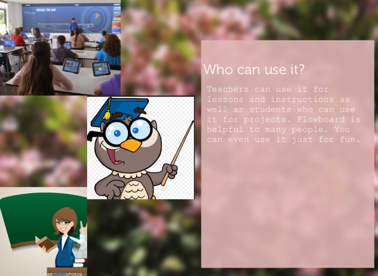 Teachers can use it for lessons and instructions as well as students who can use it for projects. Flowboard is helpful to many people. You can even use it just for fun.