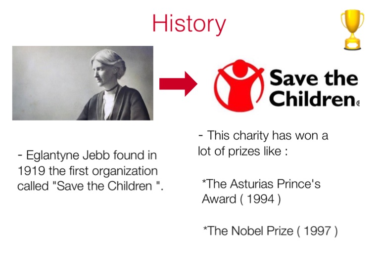 - Eglantyne Jebb found in 1919 the first organization called "Save the Children ".