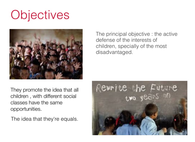 The principal objective : the active defense of the interests of children, specially of the most disadvantaged.
