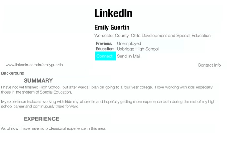 I have not yet finished High School, but after wards I plan on going to a four year college. I love working with kids especially those in the system of Special Education.