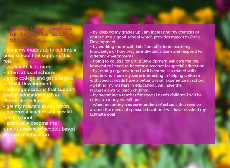 - by becoming a teacher for special needs children I will be rising up to my overall goal