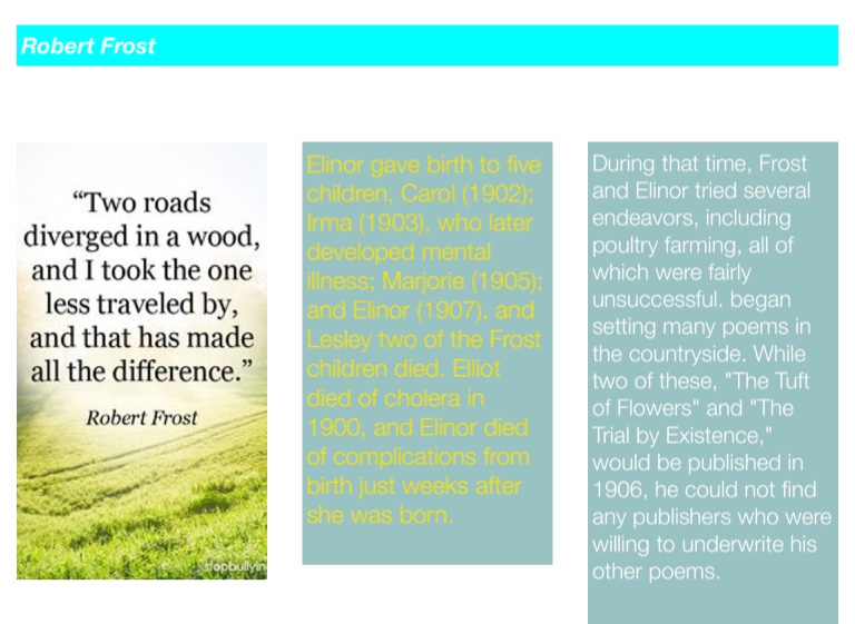 Elinor gave birth to five children, Carol (1902); Irma (1903), who later developed mental illness; Marjorie (1905); and Elinor (1907), and Lesley two of the Frost children died. Elliot died of cholera in 1900, and Elinor died of complications from birth just weeks after she was born.