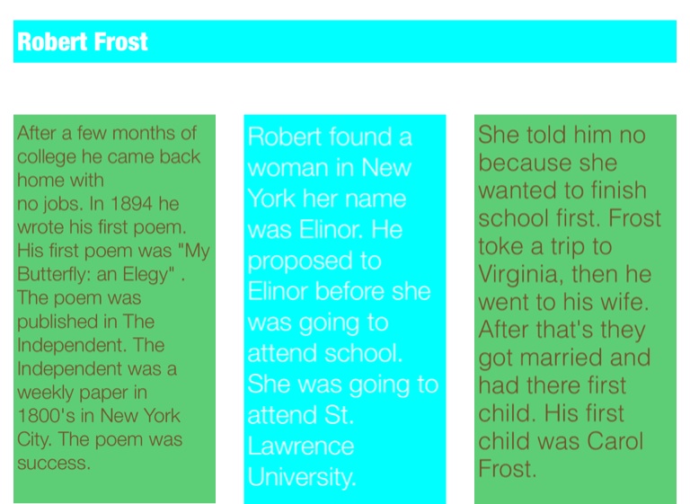 school first. Frost toke a trip to Virginia, then he went to his wife. After that's they got married and had there first child. His first child was Carol Frost.