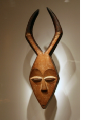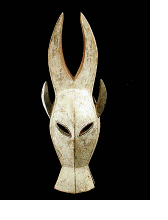 Kwele masks have two large horns which sometimes encircle and frame the face. Areas of the face are often painted with white kaolin clay, the color of the spirits. Kwele 'ekuk' masks are beautifully stylised with a heart shaped face, almond shaped eyes and a small or non-existent mouth.