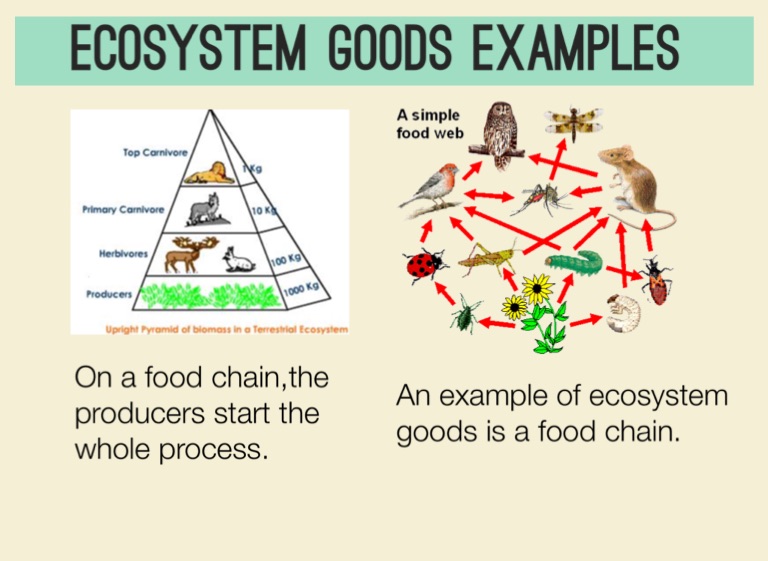 An example of ecosystem goods is a food chain.