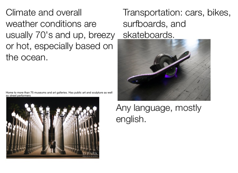 Climate and overall weather conditions are usually 70's and up, breezy or hot, especially based on the ocean.