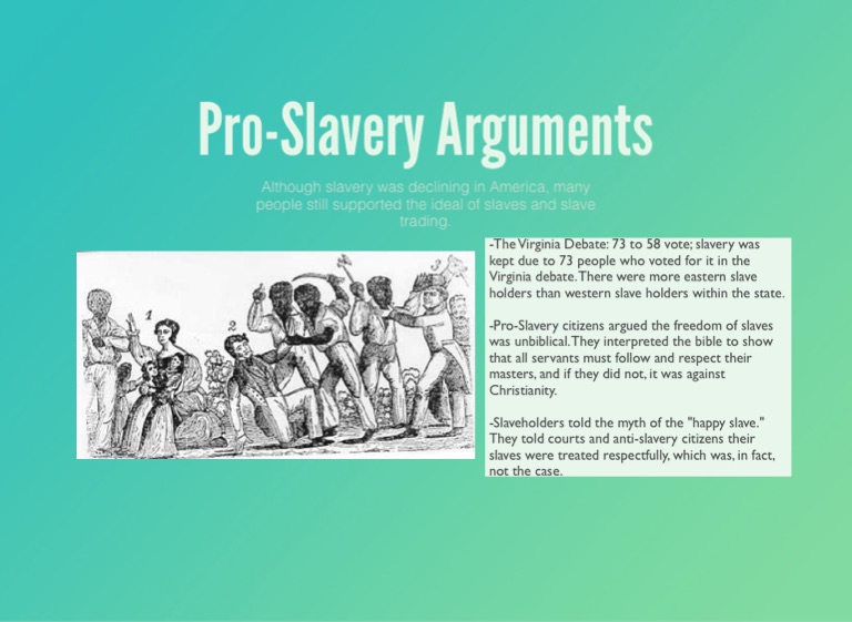 -Pro-Slavery citizens argued the freedom of slaves was unbiblical. They interpreted the bible to show that all servants must follow and respect their masters, and if they did not, it was against Christianity.