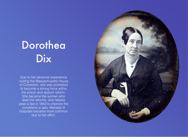 Due to her personal experience visiting the Massachusetts House of Correction, she was prompted to become a strong force within the prison and asylum reform. She became the women who lead the reforms, and helped pass a law in 1843 to improve the conditions in jails. Mentally ill hospitals became more common due to her effort.
