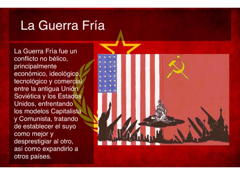 La Guerra Fría fue un conflicto no bélico, principalmente económico, ideológico, tecnológico y comercial entre la antigua Unión Soviética y los Estados Unidos, enfrentando los modelos Capitalista y Comunista, tratando de establecer el suyo como mejor y desprestigiar al otro, así como expandirlo a otros países.
