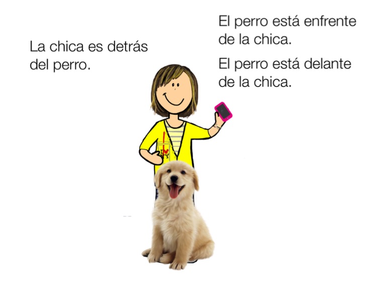 El perro está enfrente de la chica.