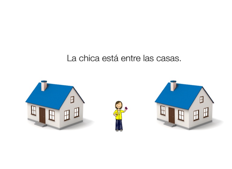 La chica está entre las casas.