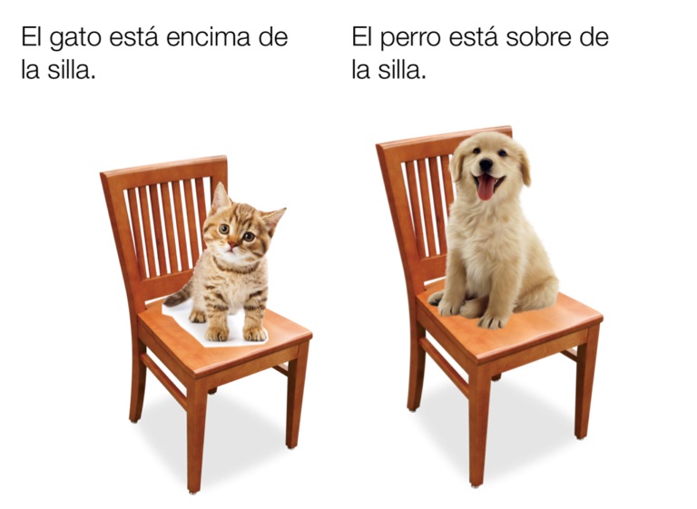 El perro está sobre de la silla.