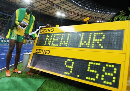 Usain bolt also had the world record before he broke it again in the 100 meter dash. His old time was 9.64.