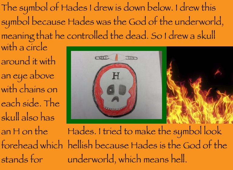 The symbol of Hades I drew is down below. I drew this symbol because Hades was the God of the underworld, meaning that he controlled the dead. So I drew a skull