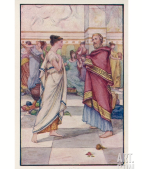 Below right: Nausicaa asks her father to supply her with a wagon and mules.