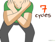 Ao fim do sétimo ciclo, relaxe os braços do lado do corpo e solte a língua do céu da boca.