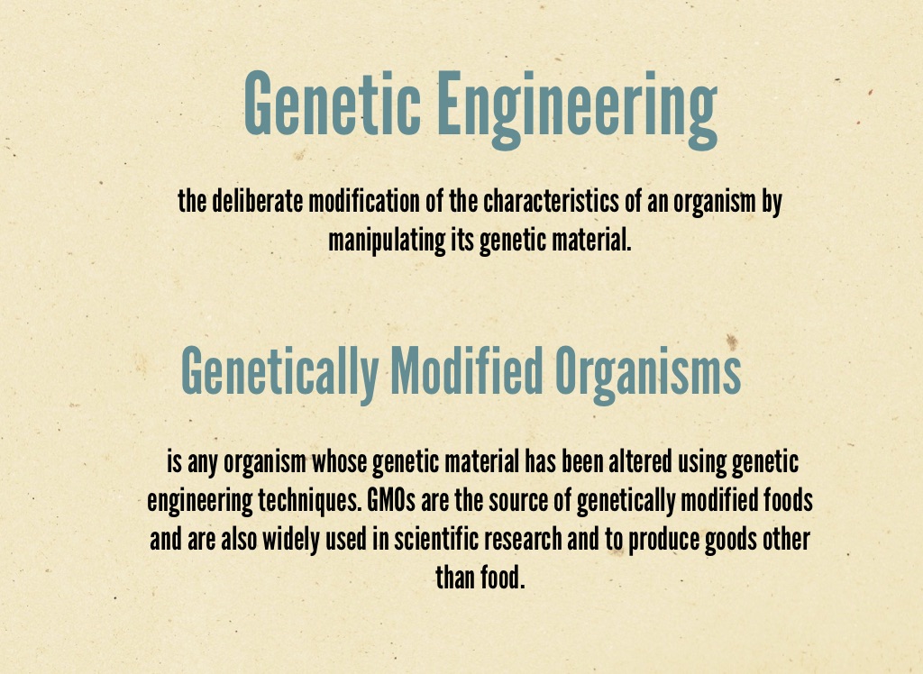 is any organism whose genetic material has been altered using genetic engineering techniques. GMOs are the source of genetically modified foods and are also widely used in scientific research and to produce goods other than food.