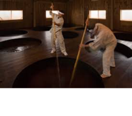 The two molds, occasionally three when brewing tamari soy sauce, are used in the brewing process. These molds are only used for brewing when making traditional soy sauces, which takes much time to make. The yeast Saccharomyces cerevisiae is used to convert some of the sugars to ethanol which can possibly undergo secondary reactions, which help to create other flavors. The specific microbe that does this is the lactobacillus. It creates the lactic acids by breaking down the sugar. The mold in this process breaks down the grain proteins into amino acids and the protein fragments and starches into simple sugars. The amino-glycosimic reaction creates the dark brown color of soy sauce. This is also why we can buy soy sauce in a range of colors. All of the microbes mentioned are part of a culture. They enter the process mixed in the grain and soy.