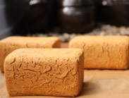 They put soybeans in a steam kettle and fill it with water than steam its or four hours while putting roasted wheat through a mill which brakes the grain into several pieces. After the soybeans are ready the put them on trays to cool. When the beans cool they add the wheat.then they add yeast and mix it all together. Then to make a brine they mix together sea salt and spring water. After the sea salt dissolves they add the soybean mix. Then blend it and leave it to ferment. For six weeks they blend it daily to release gasses. Then they only mix once a week for 12 months. Then they stir it once more and pour it in on a sheet of muslin lining a tub of a stainless steel press. They fold over the sheet and then lay down planks of wood on top of it then apply six tons of pressure with the press to squeeze out the liquid which is the soy sauce which goes through a hose into a barrel and use the stuff left behind as animal feed.