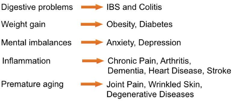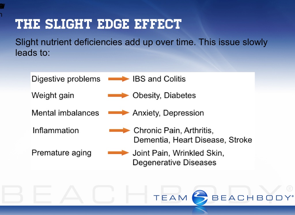Slight nutrient deficiencies add up over time. This issue slowly leads to: