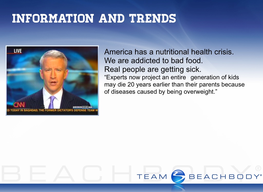 “Experts now project an entire generation of kids may die 20 years earlier than their parents because of diseases caused by being overweight.”